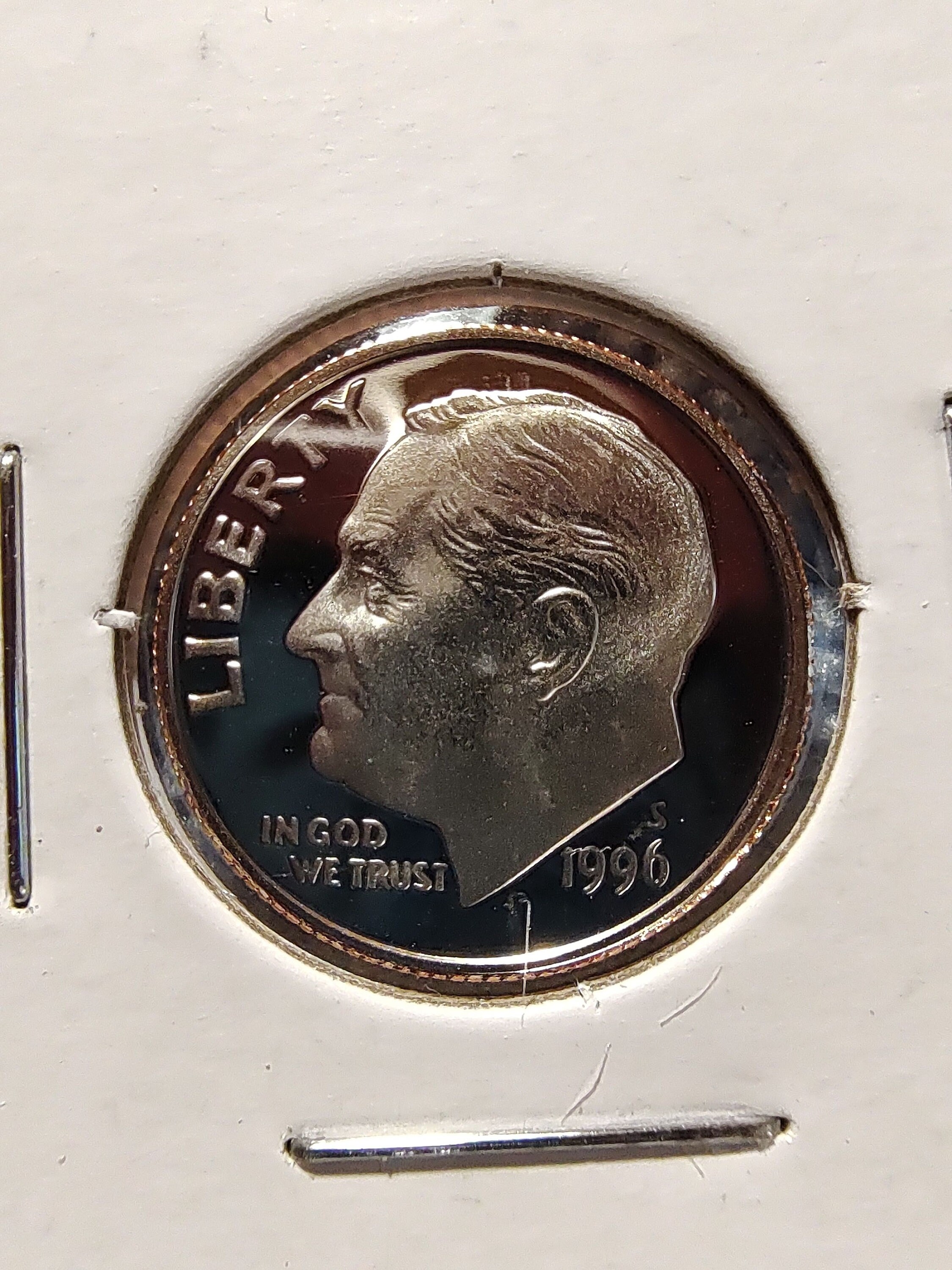 A proof Roosevelt dime is a special edition coin with a mirror-like, polished finish and a sharp, frosted design, created for collectors through a special minting process. These dimes feature a bust of Franklin D. Roosevelt on the obverse and a torch, olive branch, and oak branch on the reverse, with a mint mark from a specific facility, most often the San Francisco "S" mint.